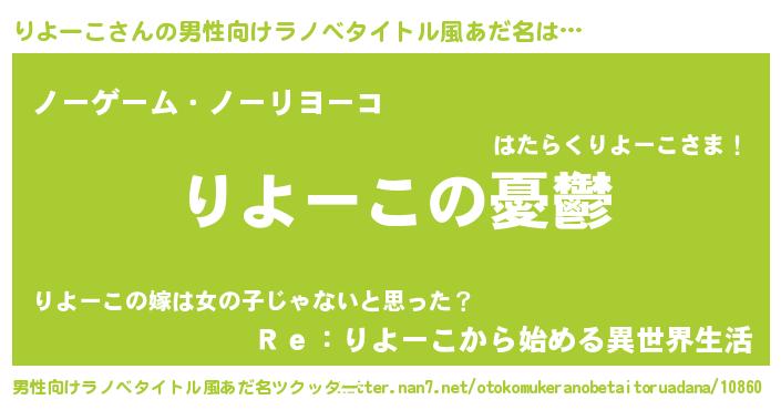 | 女子向けラノベタイトル風あだ名 | 『りよーこ姫と円卓の騎士』 |