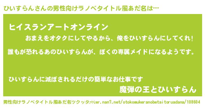 | 意味不明あだ名 | 『永久保存ひいすらん』 |