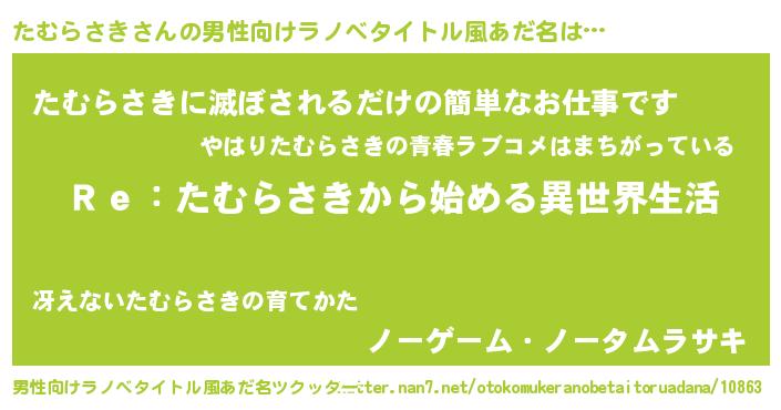 | 肩書あだ名 | 『たむらさき閣下』『たむらさき教授』 |