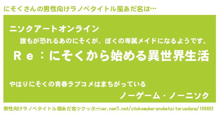 | 女子向けラノベタイトル風あだ名 | 『にそくストレイドッグス』 |