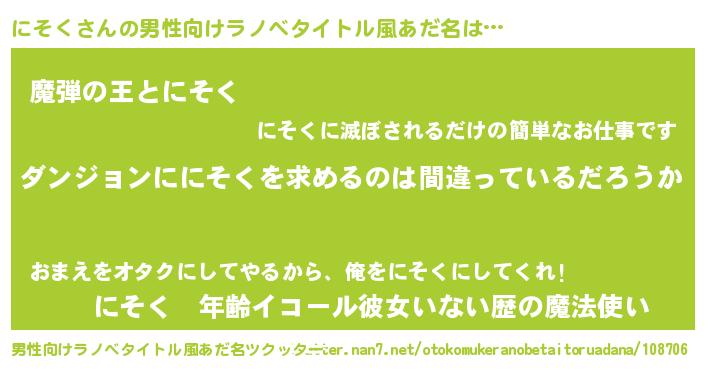 | ヒーロー風カッコイイあだ名 | 『黄金騎士ニソ』『仮面ニソダー』 |