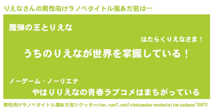 | ヒーロー風カッコイイあだ名 | 『仮面リエダー』『ウルトラりえなマン』 |