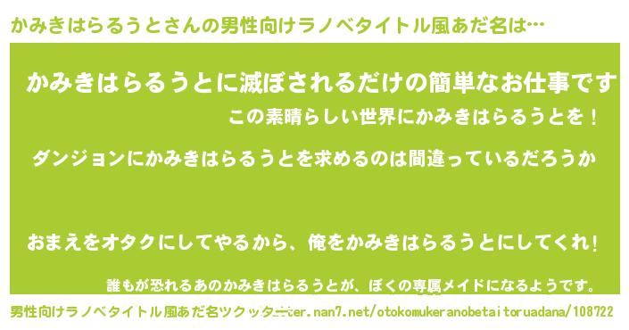 | 胡散臭い通販商品みたいなあだ名 | 『信頼と実績のネックレス…その名も「かみきはらるうと」』 |