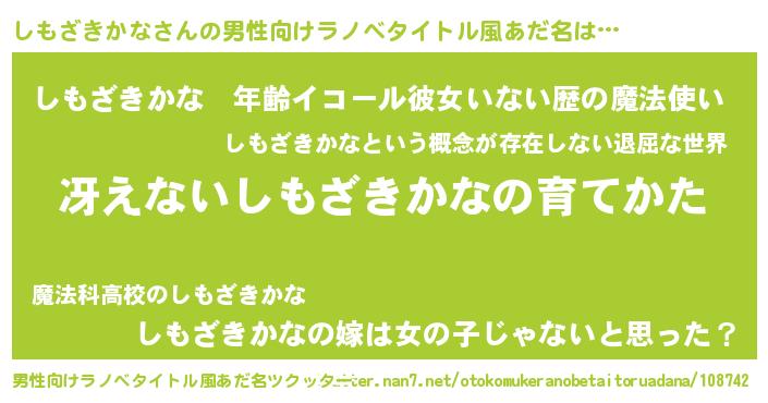 | 胡散臭い通販商品みたいなあだ名 | 『伝統あるサプリメント…その名も「しもざきかな」』 |