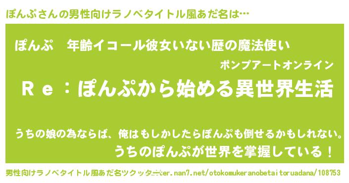 | 意味不明あだ名 | 『自称ぽんぷ』『ヨモギ科ぽんぷ属』 |