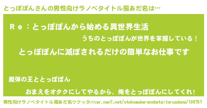 | 意味不明あだ名 | 『自称とっぽぽん』『ペロリンとっぽぽん』 |