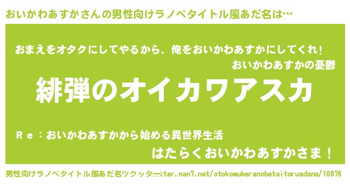 | 胡散臭い通販商品みたいなあだ名 | 『100人中100人が認めたイリジウム磁石…その名も「おいかわあすか」』 |