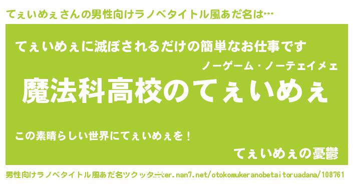 | 意味不明あだ名 | 『自称てぇいめぇ』『ペロリンてぇいめぇ』 |