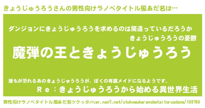 | ヒーロー風カッコイイあだ名 | 『仮面キョダー』『暗黒騎士キョ』 |