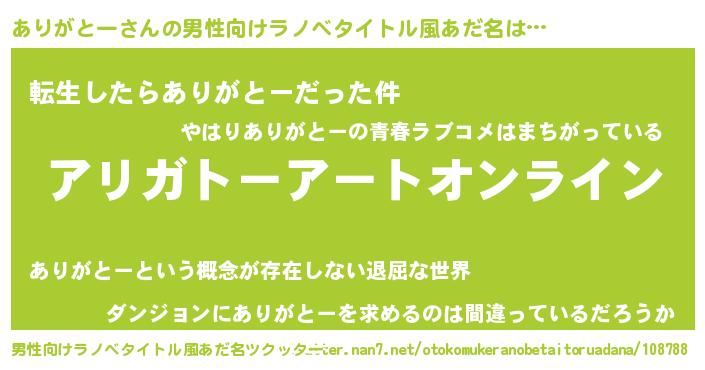 | 女子向けラノベタイトル風あだ名 | 『誰かこのありがとーを説明してください! ~契約から始まるウェディング~』 |
