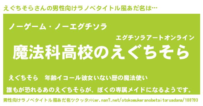 | 女子向けラノベタイトル風あだ名 | 『えぐちそらなんてお断りですっ。』 |