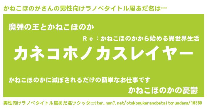 | ヒーロー風カッコイイあだ名 | 『仮面カネダー』『スーパーカネコホノカ』 |