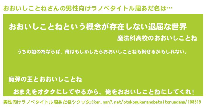 | 女子向けラノベタイトル風あだ名 | 『おおいしことねの婚約者』 |