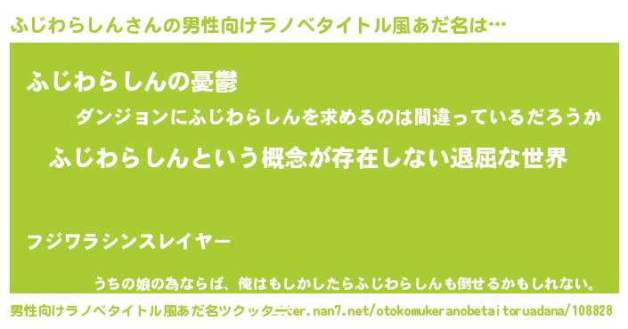 | 女子向けラノベタイトル風あだ名 | 『異世界で失敗しない100のふじわらしん』 |