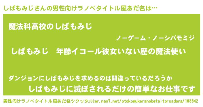 | 女子向けラノベタイトル風あだ名 | 『しばもみじの玉の輿計画!』 |