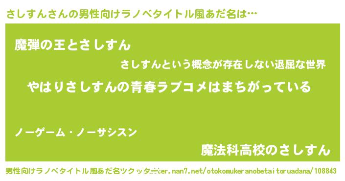 | 女子向けラノベタイトル風あだ名 | 『さしすんの雑貨屋さん』 |