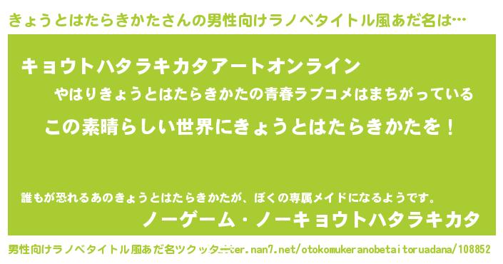 | 意味不明あだ名 | 『住所不定無職きょうとはたらきかた(62歳)』 |