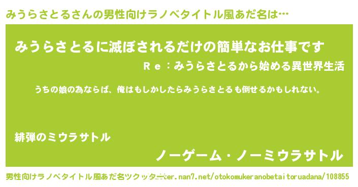 | 女子向けラノベタイトル風あだ名 | 『みうらさとるの婚約者』 |