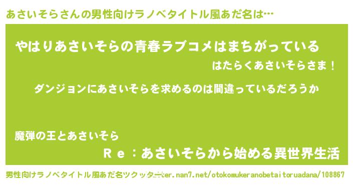 | 女子向けラノベタイトル風あだ名 | 『あさいそらは平凡を望む』 |