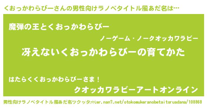 | 意味不明あだ名 | 『住所不定無職くおっかわらびー(74歳)』 |