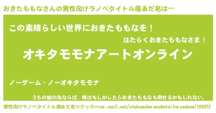 | 女子向けラノベタイトル風あだ名 | 『誰かこのおきたももなを説明してください! ~契約から始まるウェディング~』 |