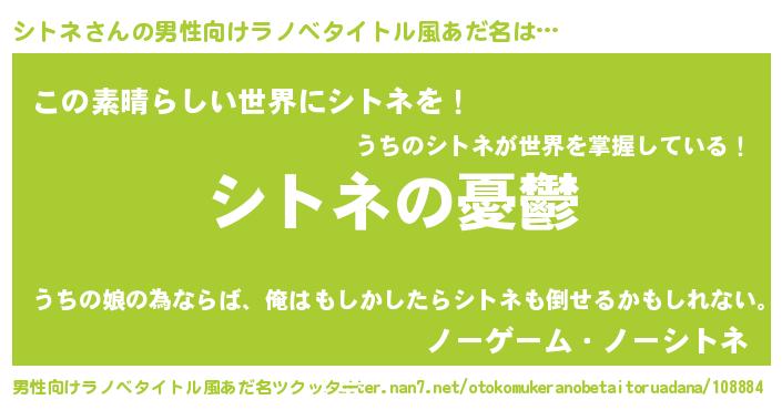 | 胡散臭い通販商品みたいなあだ名 | 『必ず成功する霊験あらたかなお札…その名も「シトネ」』 |