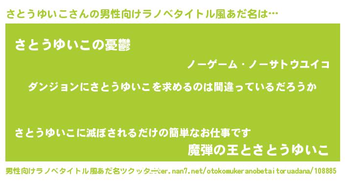 | 女子向けラノベタイトル風あだ名 | 『さとうゆいこは平凡を望む』 |