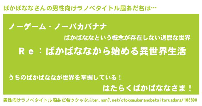 | 意味不明あだ名 | 『自称ばかばなな』『永久保存ばかばなな』 |