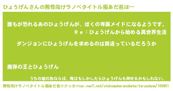 | 女子向けラノベタイトル風あだ名 | 『ひょうげんは平凡を望む』 |