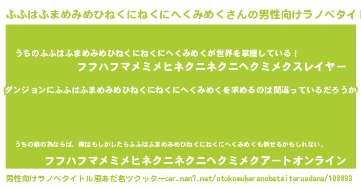 | 女子向けラノベタイトル風あだ名 | 『ふふはふまめみめひねくにねくにへくみめくは平凡を望む』 |