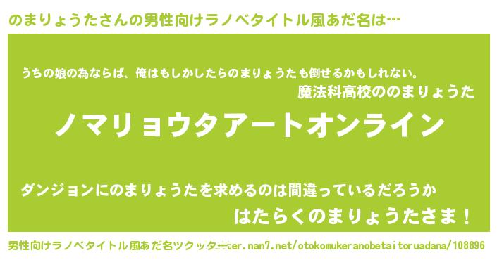 | 胡散臭い通販商品みたいなあだ名 | 『モテモテ間違いなし霊験あらたかなお札…その名も「のまりょうた」』 |