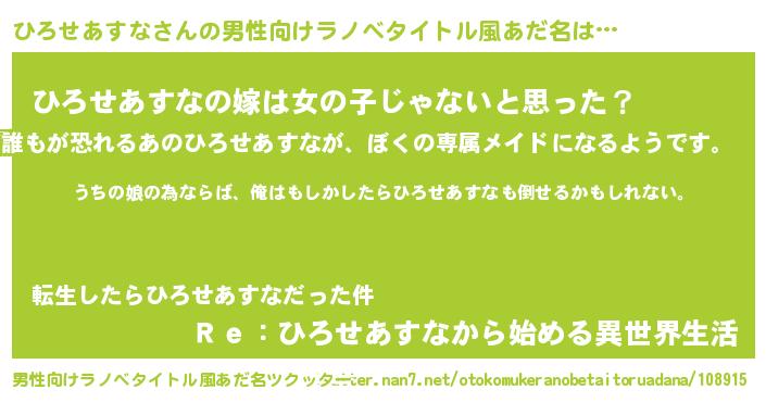 | 胡散臭い通販商品みたいなあだ名 | 『運命の人と巡り会える高級そうな壺…その名も「ひろせあすな」』 |