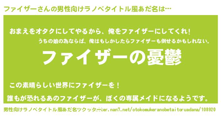 | 女子向けラノベタイトル風あだ名 | 『(仮)ファイザーのやんごとなき事情』 |