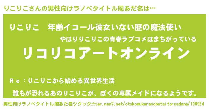 りこりこさんの男性向けラノベタイトル風あだ名をツクッター!
