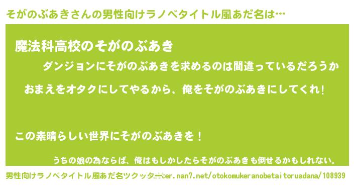 | 女子向けラノベタイトル風あだ名 | 『そがのぶあき夫妻のなれそめ』 |