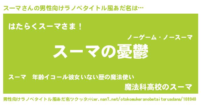 | 女子向けラノベタイトル風あだ名 | 『スーマ姫と円卓の騎士』 |