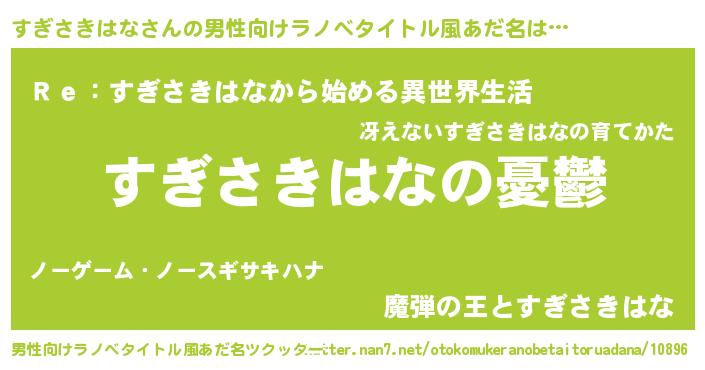 | 胡散臭い通販商品みたいなあだ名 | 『モテモテ間違いなし霊験あらたかなお札…その名も「すぎさきはな」』 |