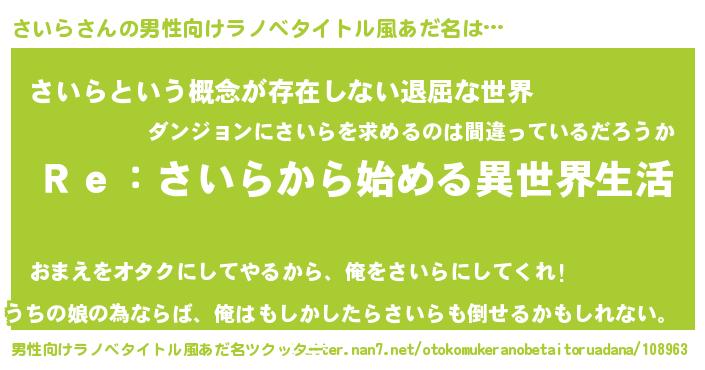 | 女子向けラノベタイトル風あだ名 | 『闇のさいら』『さいらの婚約者』 |