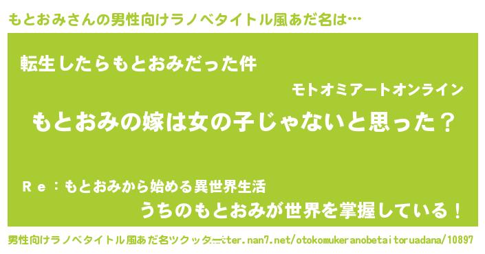 | 女子向けラノベタイトル風あだ名 | 『もとおみ様がみてる』『闇のもとおみ』 |