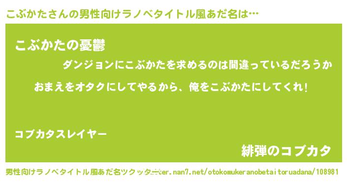 | 女子向けラノベタイトル風あだ名 | 『こぶかた夫妻のなれそめ』 |