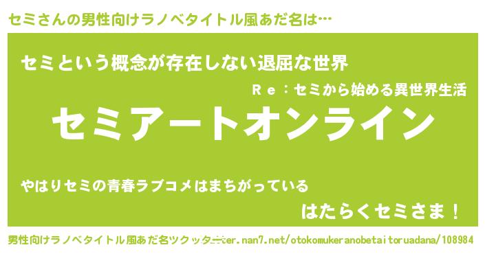 | ヘコむあだ名 | 『セミにー』『セミ(震え声)』 |