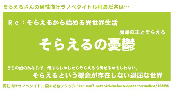 | 女子向けラノベタイトル風あだ名 | 『そらえる姫と円卓の騎士』 |