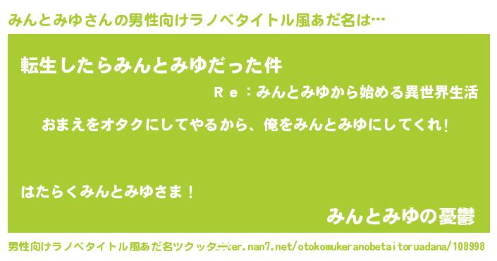 | ヘコむあだ名 | 『みんにゅー』『みんとみゆ(笑)』 |