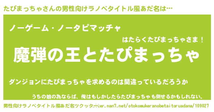 | 女子向けラノベタイトル風あだ名 | 『たぴまっちゃが死なない童話 林檎のたぴまっちゃの診療簿』 |