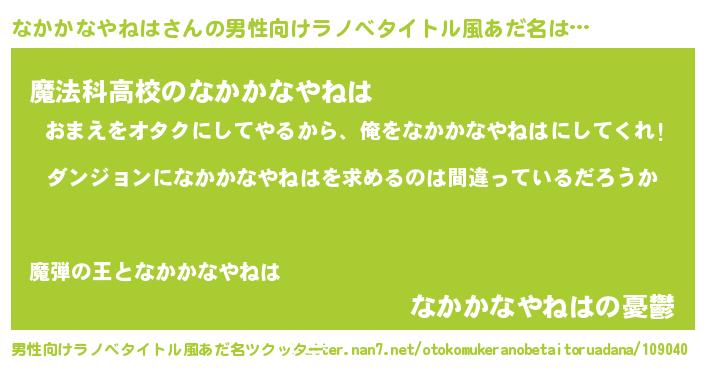 | 女子向けラノベタイトル風あだ名 | 『なかかなやねはは平凡を望む』 |