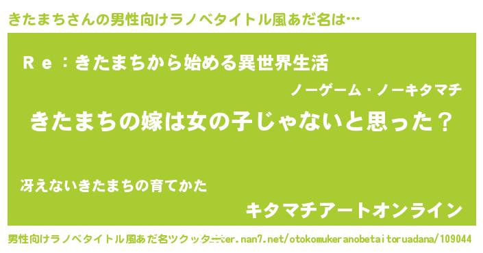 | 女子向けラノベタイトル風あだ名 | 『きたまちの卵を拾いまして』 |
