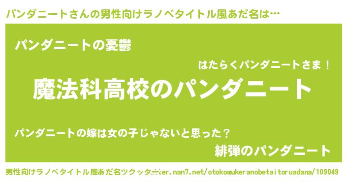 | 意味不明あだ名 | 『自称パンダニート』 |
