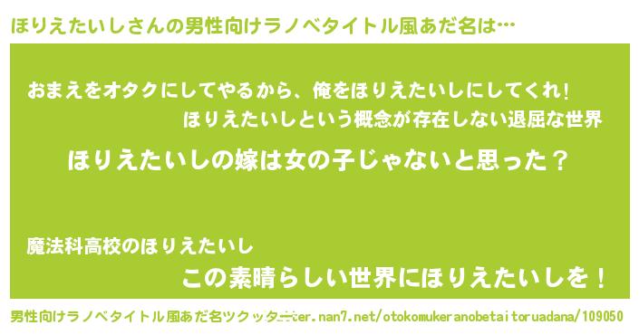 | 女子向けラノベタイトル風あだ名 | 『ほりえたいし様がみてる』 |