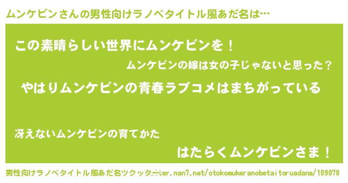 | 女子向けラノベタイトル風あだ名 | 『ムンケビンの雑貨屋さん』 |
