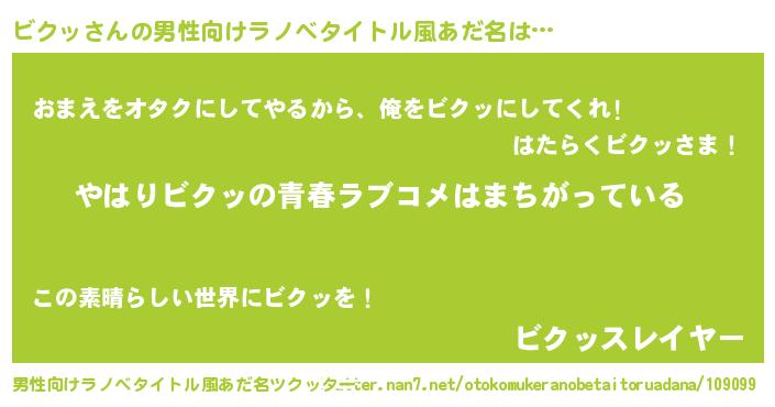 | 胡散臭い通販商品みたいなあだ名 | 『世界が平和になる高級そうな壺…その名も「ビクッ」』 |